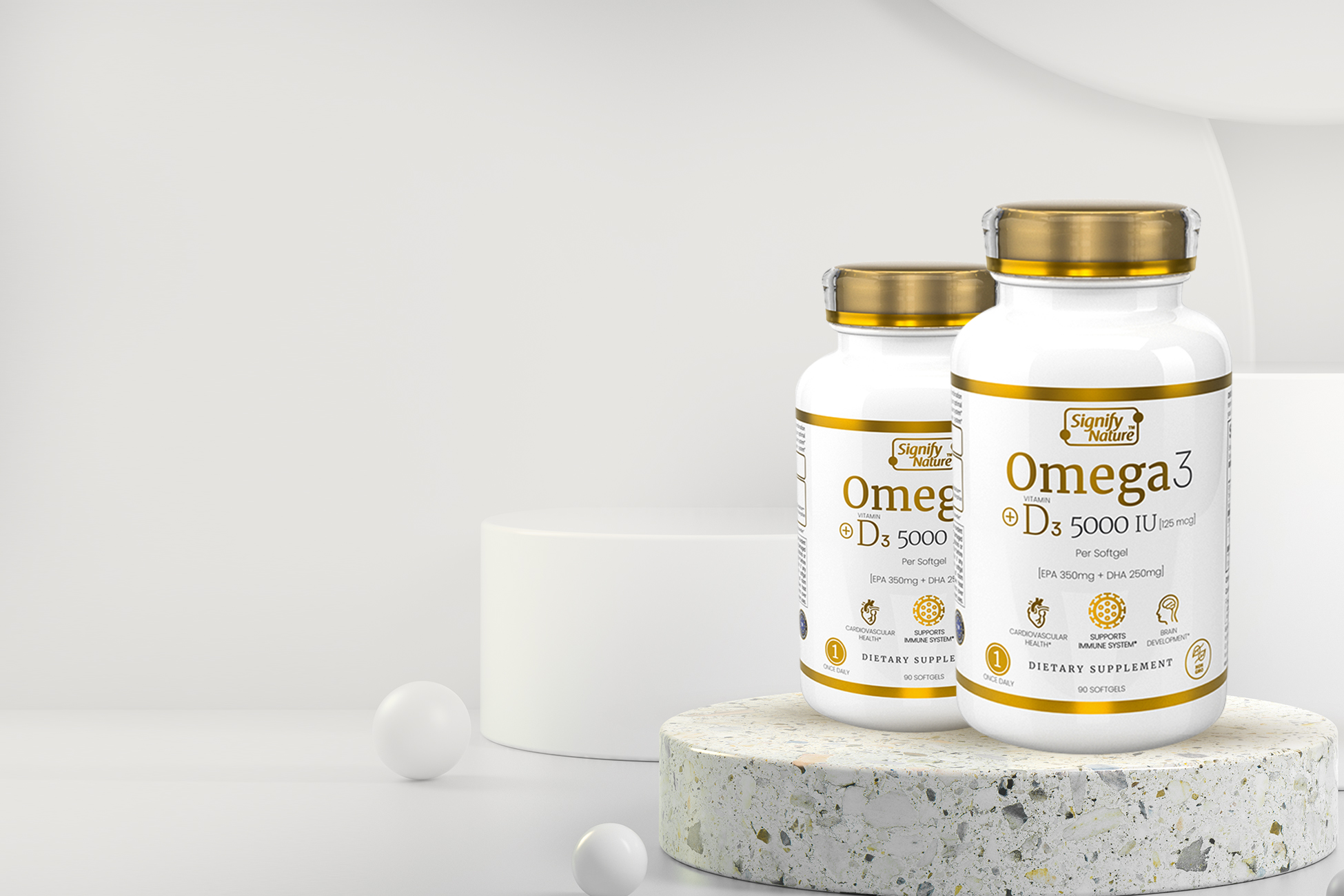 Optimal Ratio: Omega 3 From Fish Oil + High Potency Vitamin D3