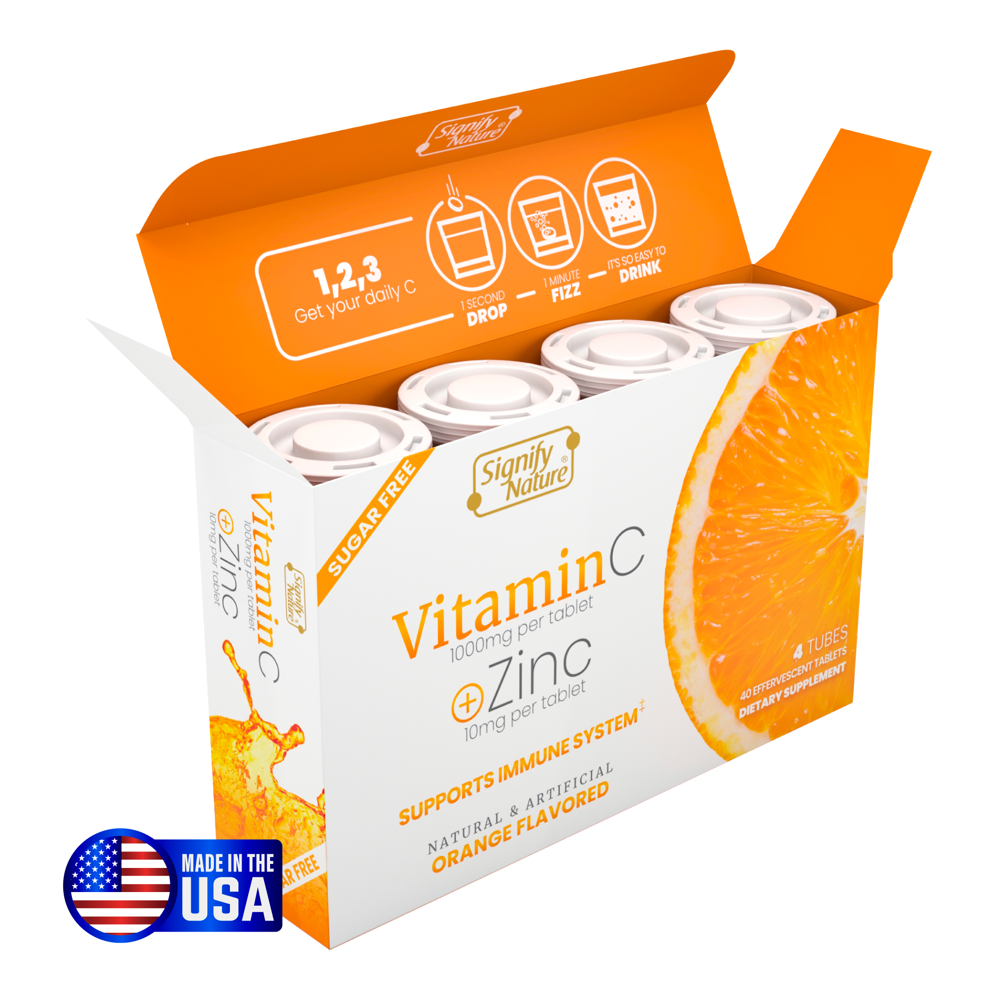 SIGNIFY NATURE’S VITAMIN C SUGAR FREE PLUS ZINC EFFERVESCENT TABLETS PROVIDE STRONG IMMUNE SYSTEM SUPPORT TO HELP THE ENTIRE FAMILY STAY PROTECTED EVEN THROUGH THE TOUGHEST SEASON*
